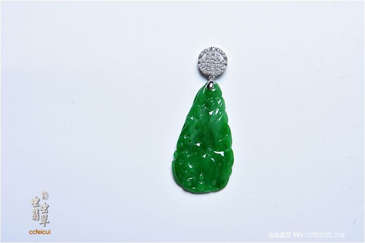 商品名称:九妹【G18K白金钻扣镶嵌翡翠满绿吊坠】镶嵌定制