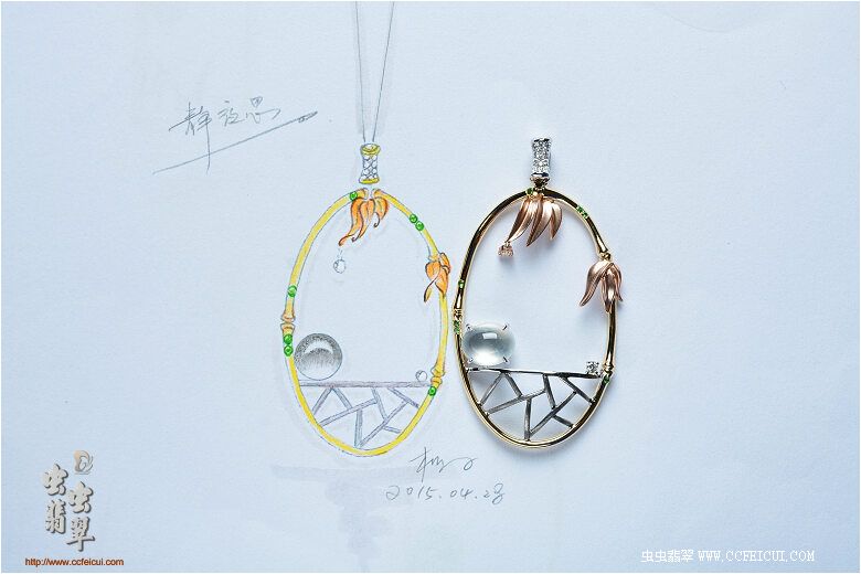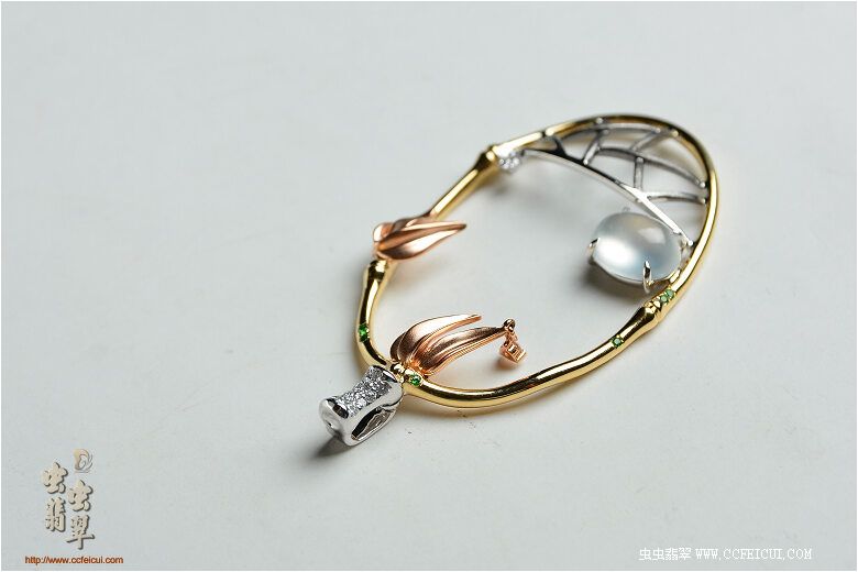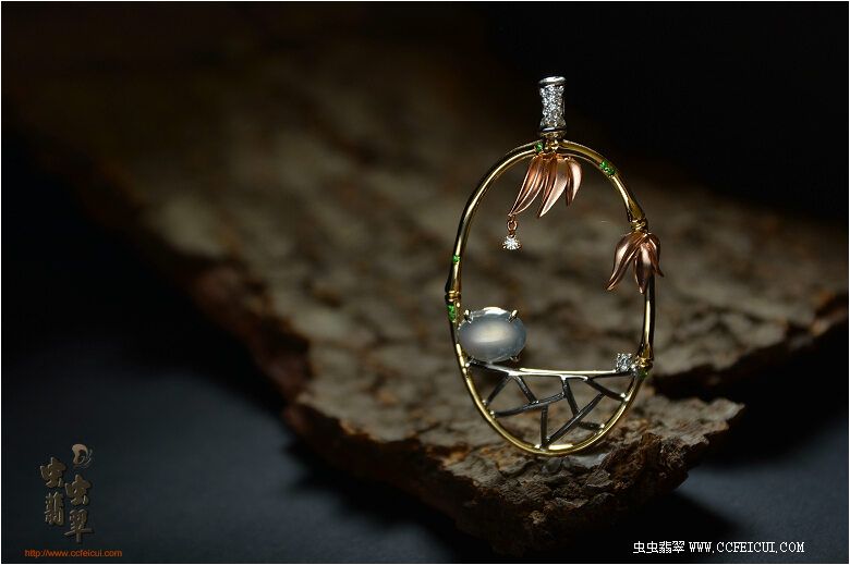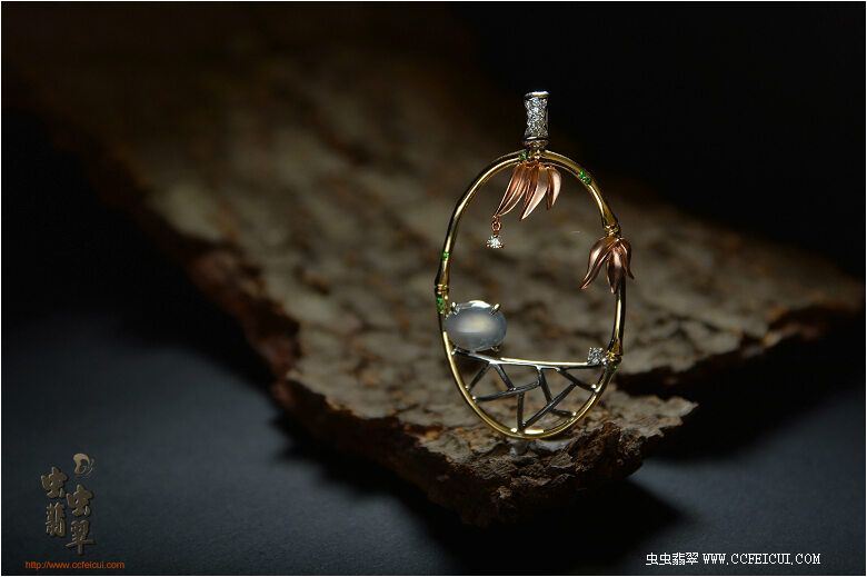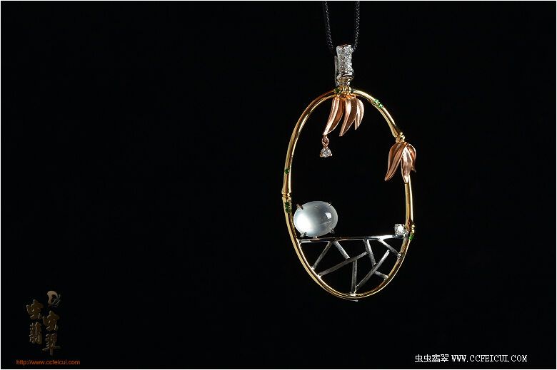 导航 网站首页 -> 论坛首页 -> 专店专区 -> 历史商品 -> 1507-8-禅意中国系列之(静夜思)G18K金镶翡翠挂件(樱子设计)