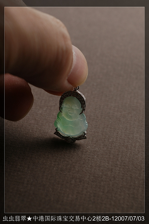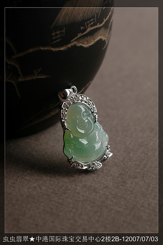 商品编号:201190# 商品名称:201190#G18K白金伴钻玻璃种笑佛(已售) 规格尺寸:21.8*12.7*3.8 上架时间:2007-9-29 11:23:05